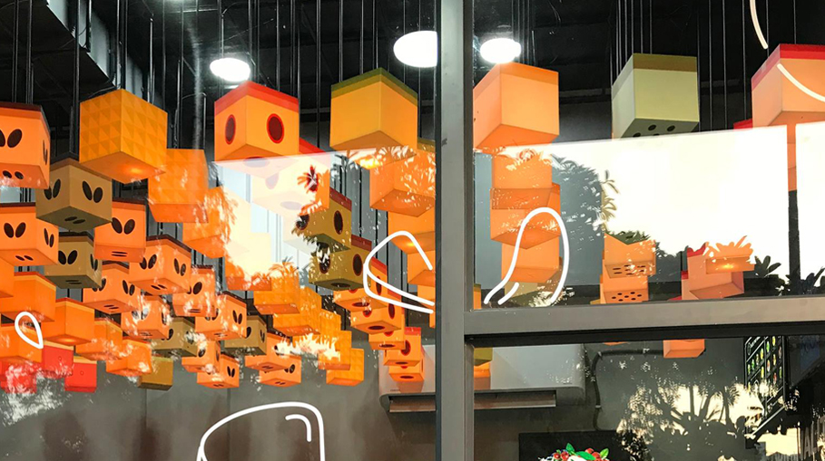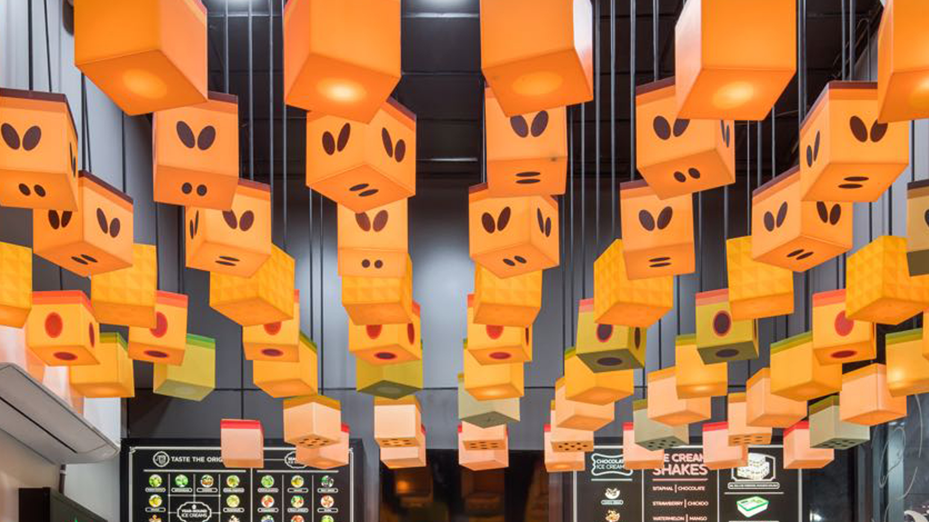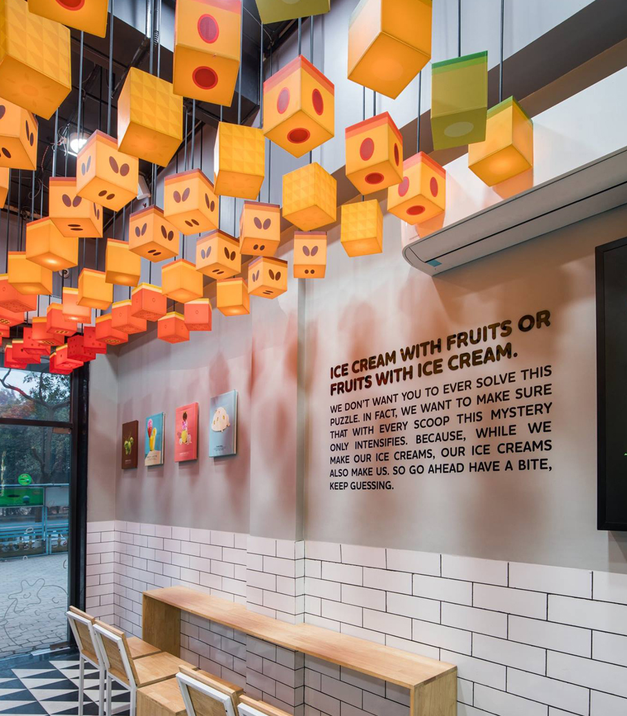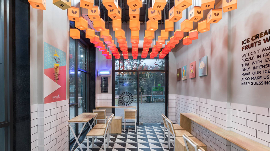 The most rewarding part of the Naturals experience is when one gets pieces of fruit. This became the inspiration behind the fruit pieces installation in Naturals Gurgaon outlet. The illuminated fruit pieces created an ambience and also impressed the brand legacy of having a fruit DNA.